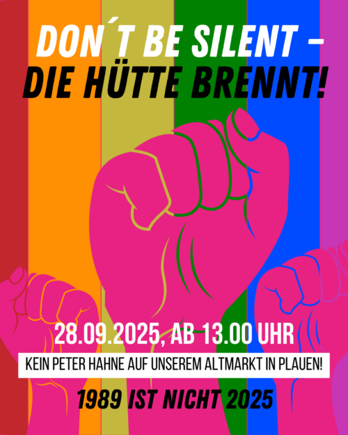 Am heutigen Tage hat dieser Verein unter der Überschrift „Don’t be silent (Schweigen Sie nicht) – Die Hütte brennt! – 28.09.2025, ab 13:00 Uhr -Kein Peter Hahne auf unserem Altmarkt in Plauen!“ folgenden Text veröffentlicht: