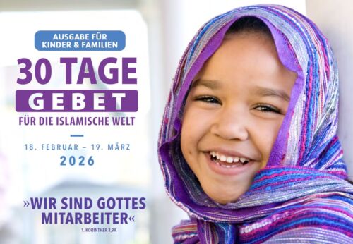 Die Evangelische Allianz in Deutschland (EAD) veranstaltet wieder einmal ihre Aktion „30 Tage Gebet für die islamische Welt“. Für die Zeit vom 18. Februar bis 19. März 2026 gibt sie auch Gebetshinweise und -spielanleitungen für Kinder an die Hand. – Wir haben in unserem Beitrag vom 18.01.2024 ausdrücklich auf die Gefahren solcher Aktionen hingewiesen.