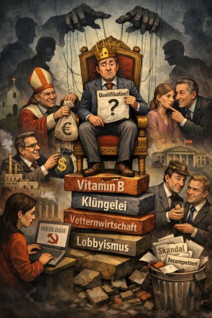 Wenn wir uns heute anschauen, wer sich alles berufen fühlt ein hohes Amt in unserem Land zu begleiten, dann überfällt einem oft großes Grauen. Das Schlimmere aber: Die Leute werden oft in ein solches Amt hineingehievt, ob sie den damit verbundenen Aufgaben gewachsen sind oder nicht. Was dabei herauskommt, wenn Posten durch Klüngelei, Günstlingsmanier, ideologische Einflussnahme oder mithilfe von „Vitamin B“ besetzt werden, das sehen wir in vielen Regierungs-, Wirtschafts-, Bischofs- und Pfarrämtern.